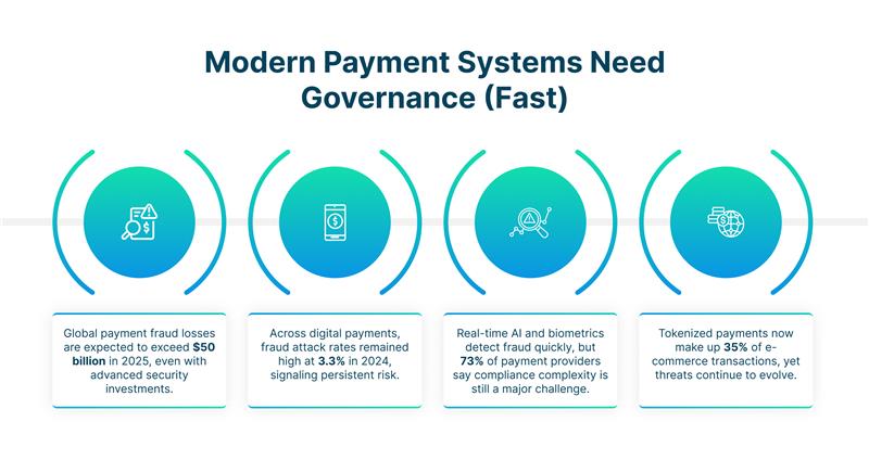 Modern payment systems need more than automation; governance ensures security, compliance, fraud control, and long-term scalability.