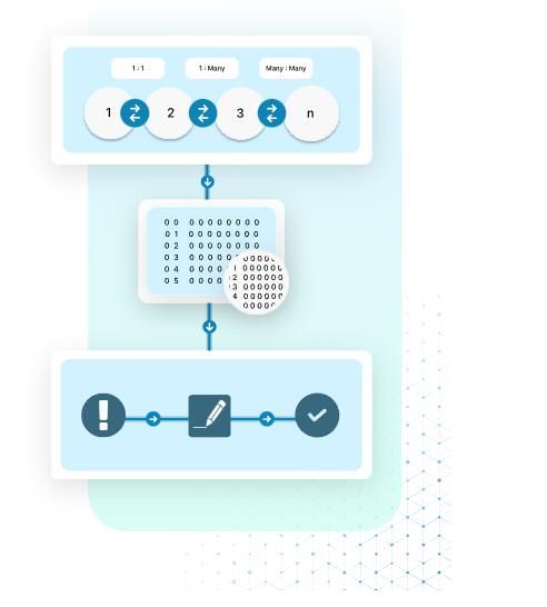 Records are matched using invoice numbers, order IDs, payment references, customer IDs, or rule-based logic. Exact, partial, and tolerance-based matches are applied depending on data quality.